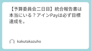 こんばんは。東村山市議会議員のかくたかづほです。昨日、予算特別委員会もあり、長かった3月議会も終わりを迎えました。今回もいつも通りに雑多にまとめていきます。政策総務委員長報告議案第1号 東村山市行政手続における特定の個人を識別するための番号...
